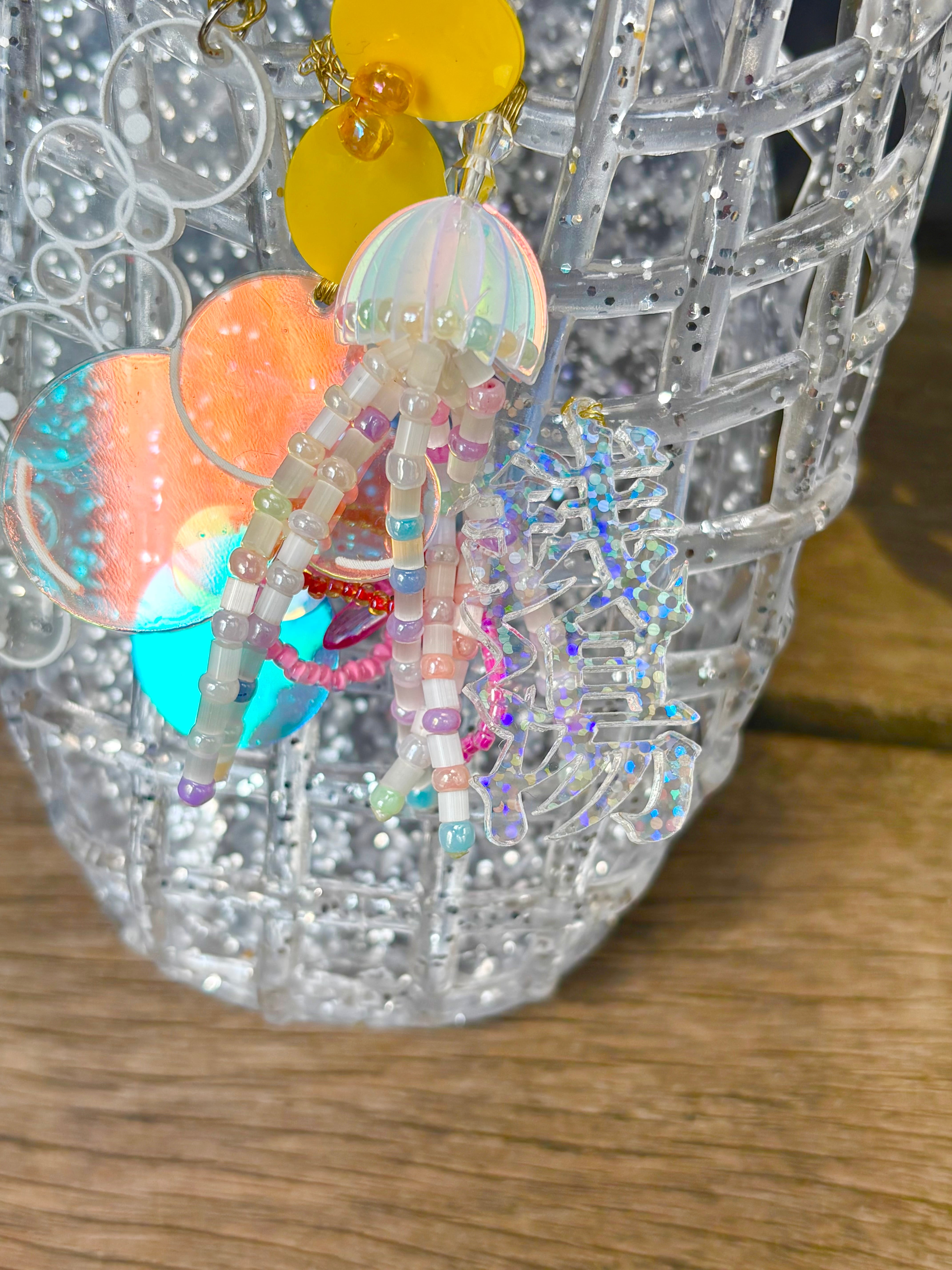 • 装飾: 「銭湯」アクリルチャーム、クラゲビーズチャーム、マルチカラービーズ、スパンコール